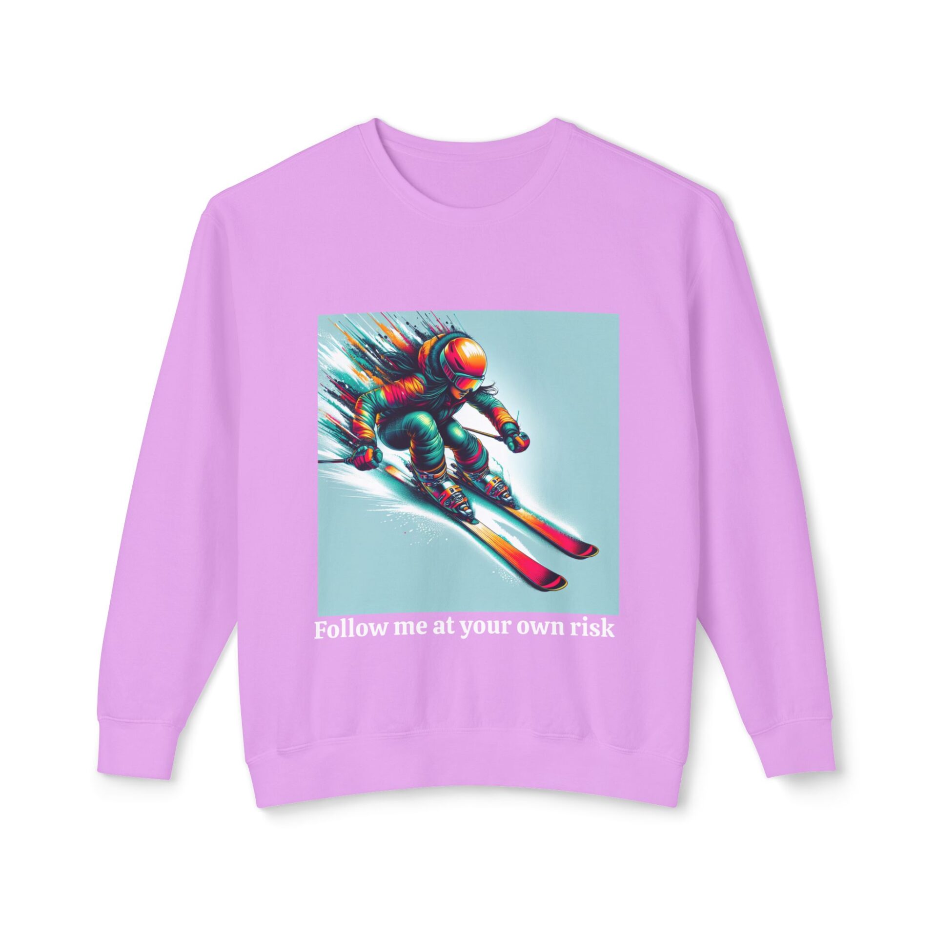 A cozy unisex lightweight crewneck sweatshirt for skiing enthusiasts. Perfect for staying warm and comfortable during chilly days on the slopes, this relaxed fit sweatshirt is ideal for winter sports lovers. Great for ski trips, mountain getaways, and snow season celebrations. Made with soft, ring-spun cotton fabric with 100% cotton threads, it sits unmatched when it comes to softness.
